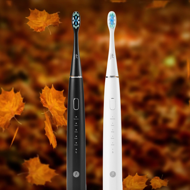JT's soniska eltandborste använder riktiga svepande soniska borströrelser som pressar vatten och tandkräm i form av mikrobubblor in mellan tänderna och tar effektivt bort beläggningar, missfärgningar och mycket mer plack än en manuell tandborste. Resultatet blir renare tänder, friskare tandkött och bättre munhälsa.